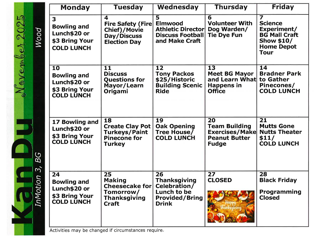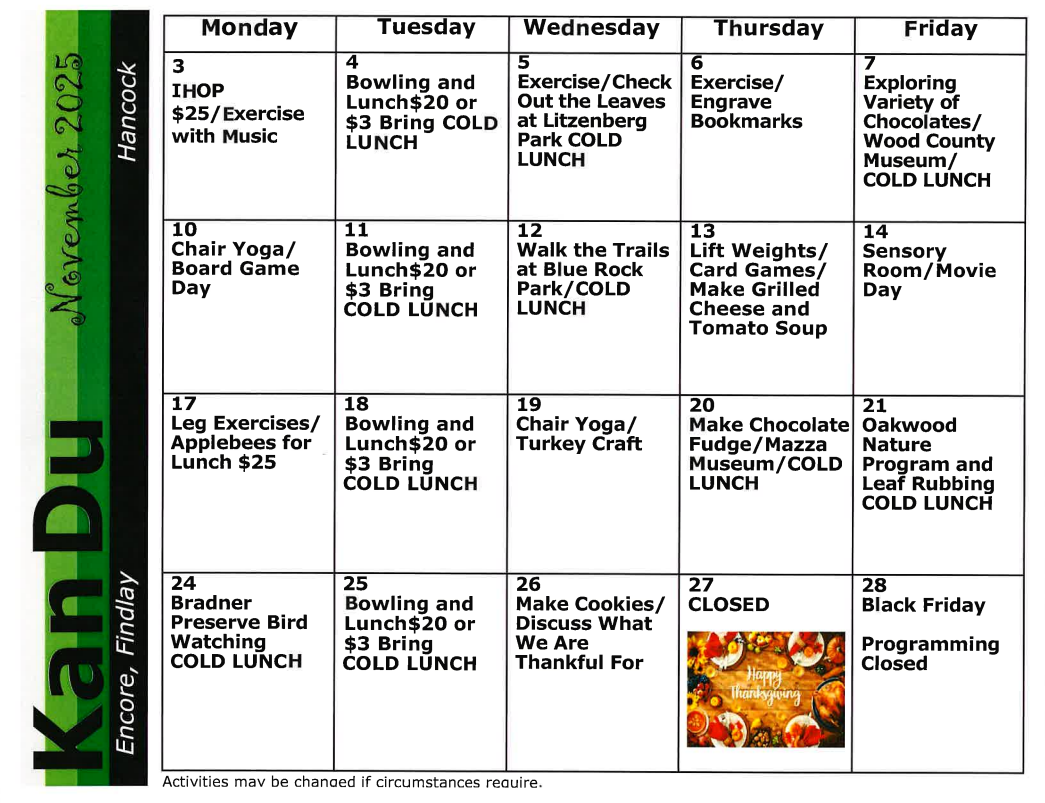 Activities / Outings Calendars Findlay Encore Nov Encore_001 Findlay In Motion Nov IN MOTION 1 AND 2_001 Findlay Studio Nov Studio_001 BG In Motion NOVEMBER BG_001 Findlay Studio 11 2025 November Studio 1 Hancock